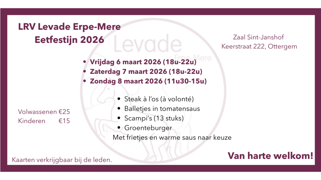 We nodigen jullie van harte uit op ons jaarlijks eetfestijn van Levade Erpe-Mere!